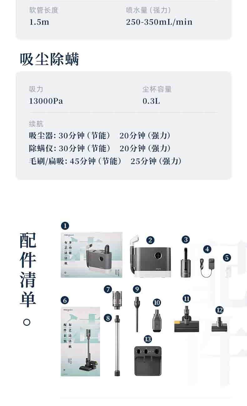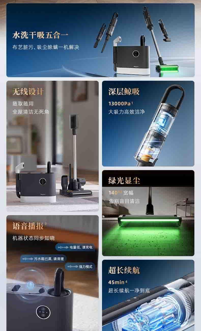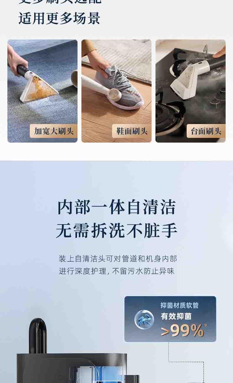 2.水洗干吸隨意切換,除螨、吸塵多種清潔