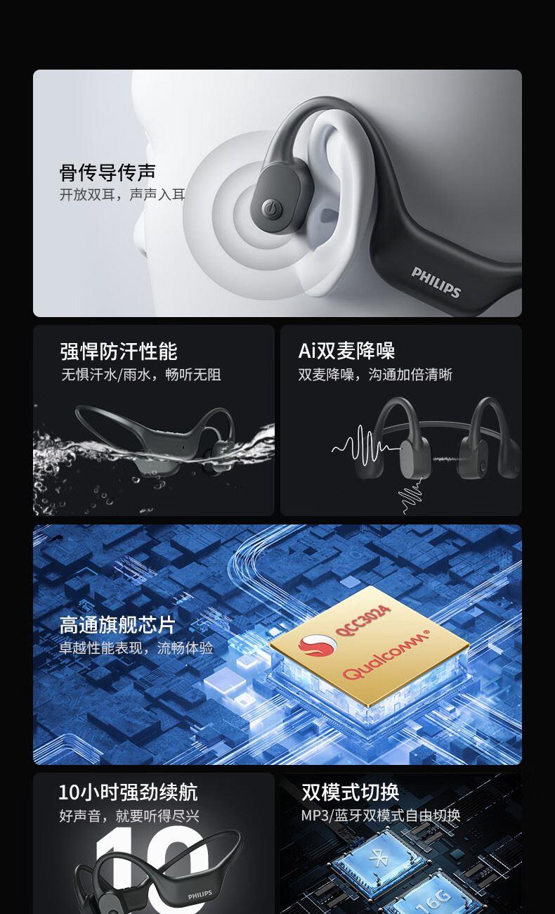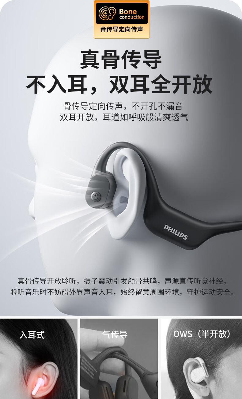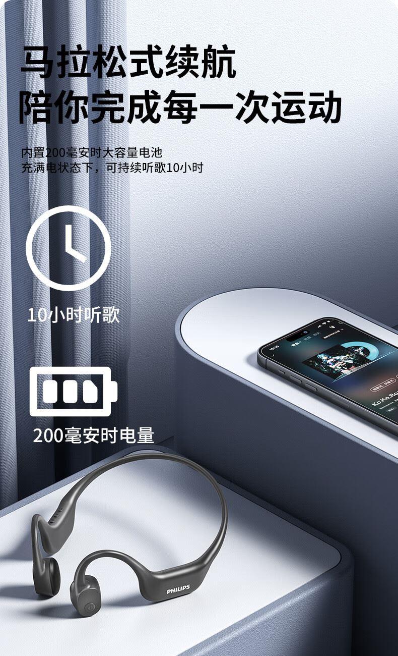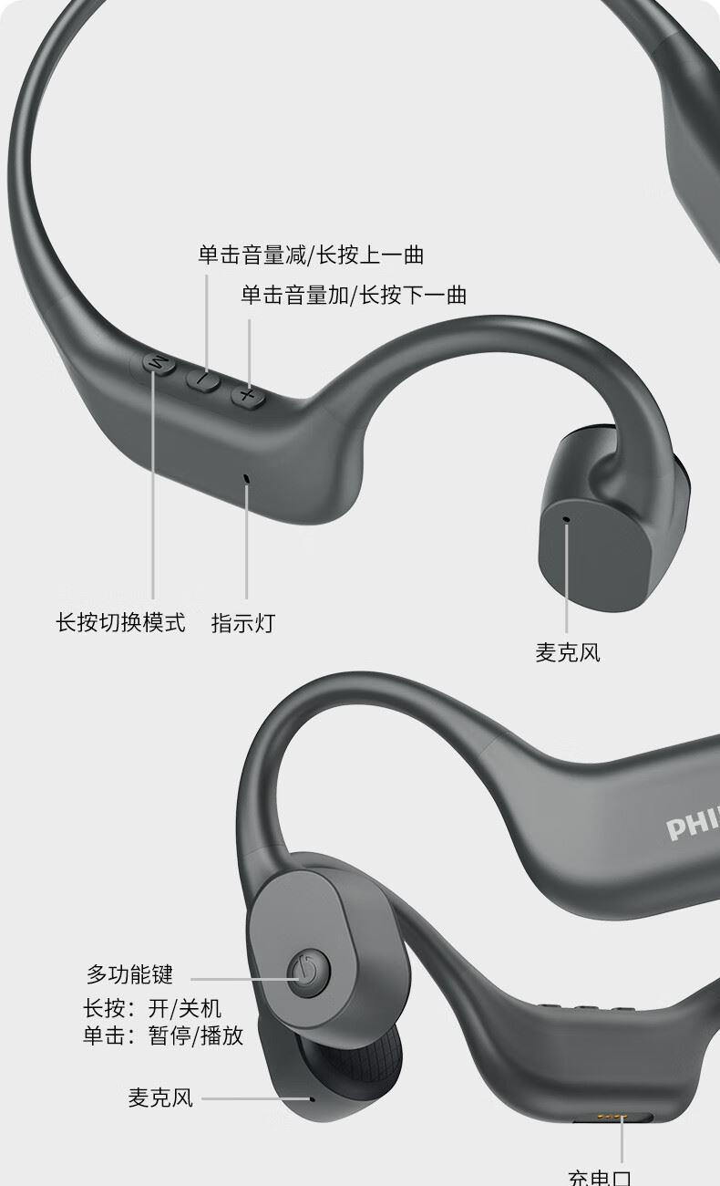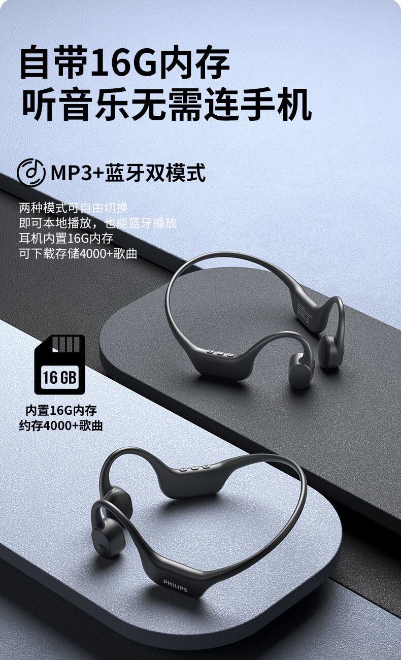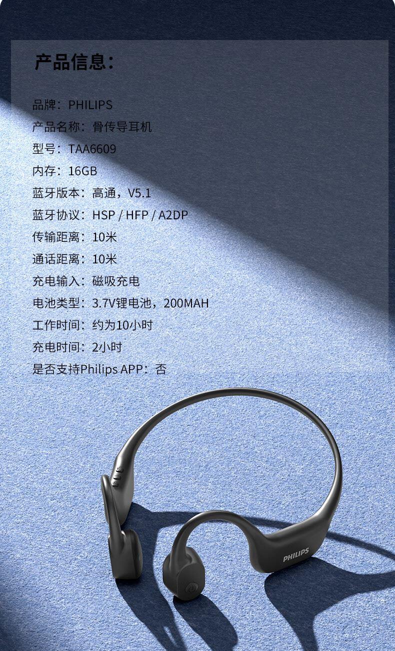 飛利浦16G內(nèi)存骨傳導(dǎo)藍(lán)牙耳機(jī)TAA6609