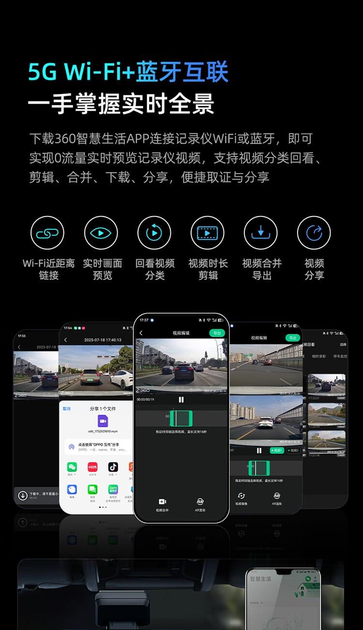 5、GPS行車軌跡回放,0流量查看/下載行車視頻,一鍵分享行車生活。