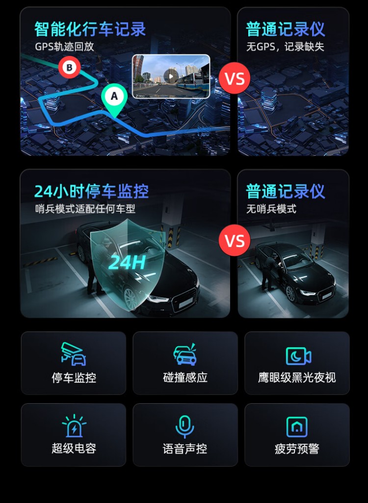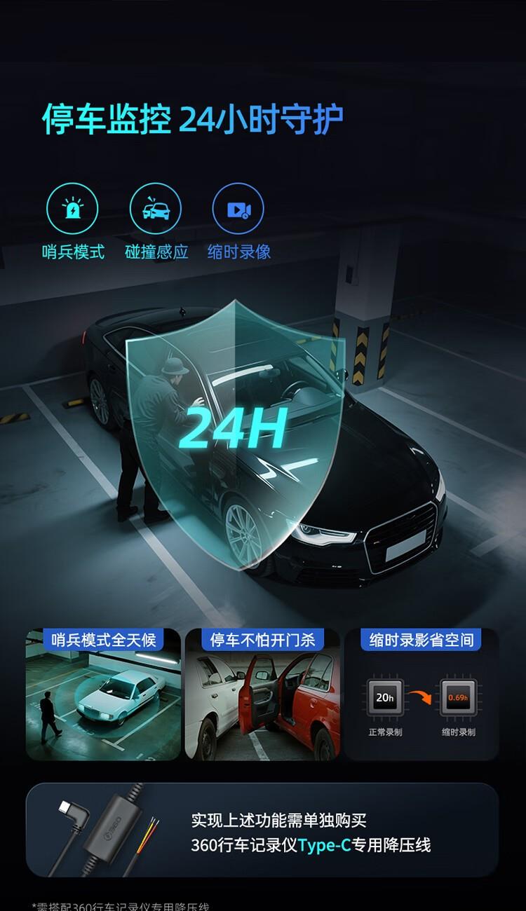 4、24小時停車監(jiān)控+震動感應(yīng)系統(tǒng),守護(hù)不分晝夜(需配降壓線Type-C接口)