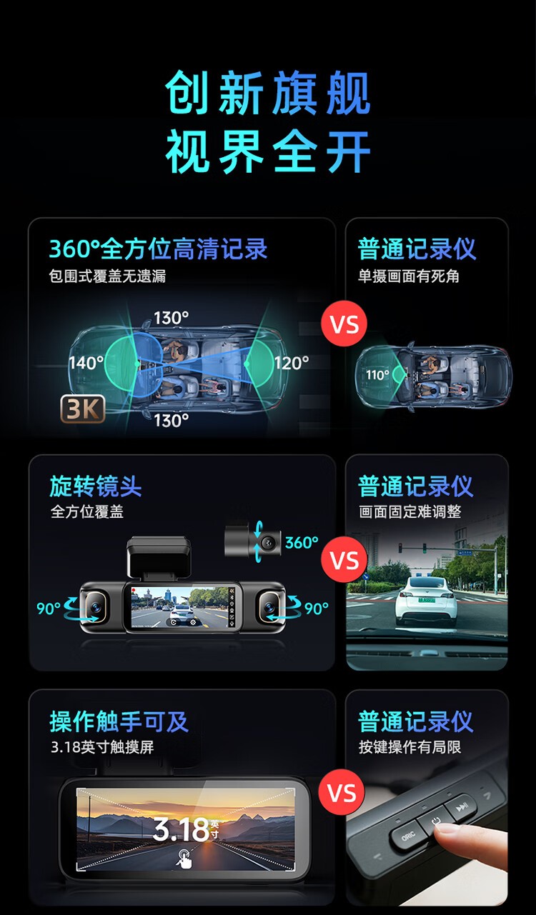 1、3.18英寸高清顯示觸控大屏,駕駛環(huán)境全局展現(xiàn),前后雙錄。