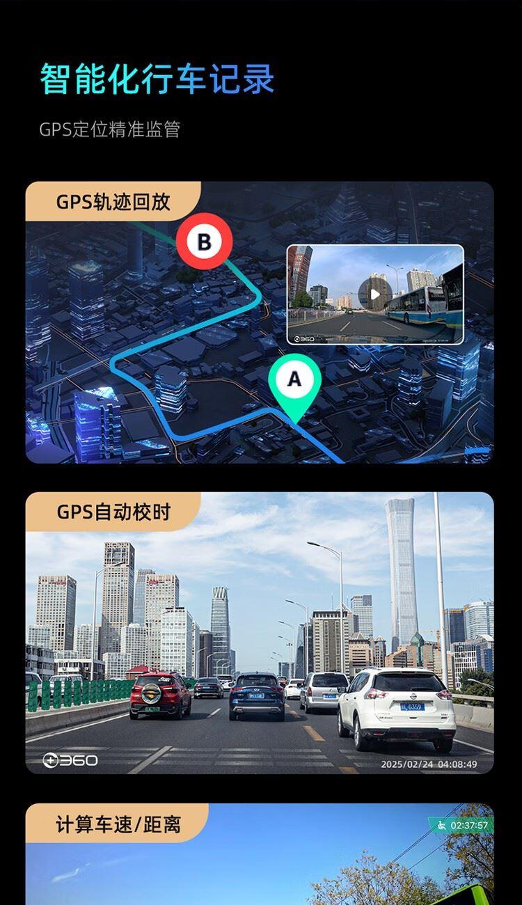 360AI記錄儀G980多攝版3K超清夜視GPS行車軌跡