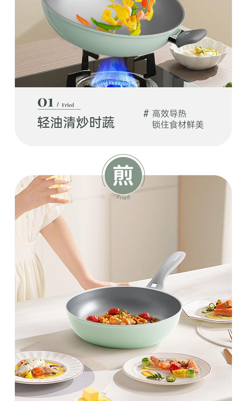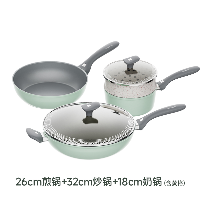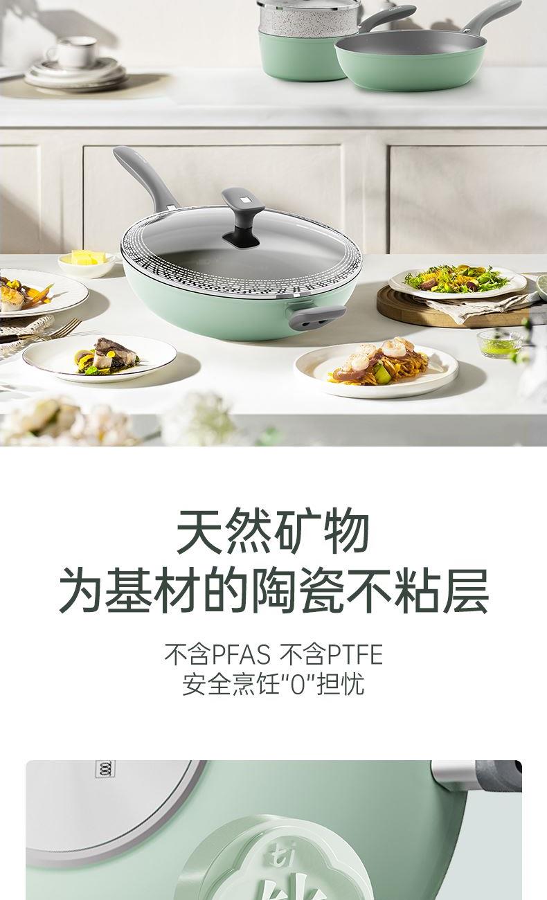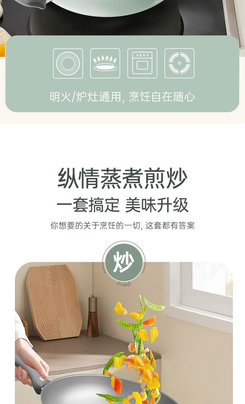 規(guī)格:32cm炒鍋+18cm奶鍋+18cm蒸格 材質(zhì):鋁合金+陶瓷 單個尺寸:650*400*172 1、無鉚釘,全鍋無死角不藏污 2、配蒸籠上蒸下煮,一份時間雙份美味 3、厚底薄壁,有效減少70%油煙 4、陶瓷外壁,久燒不易變色 5、不含PFAS PTEE,烹飪0擔(dān)憂