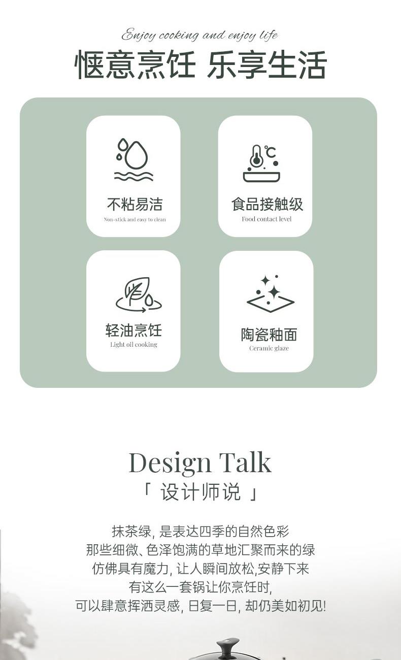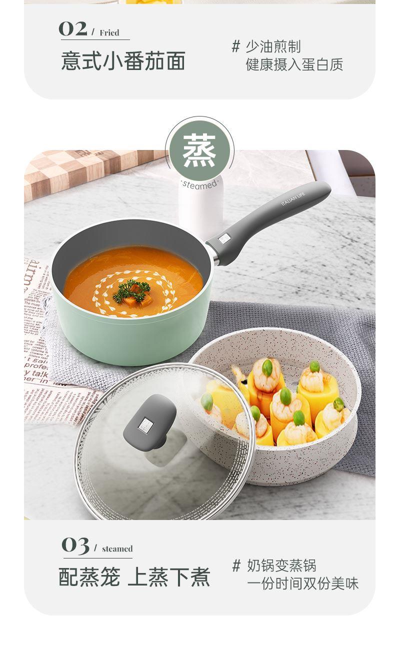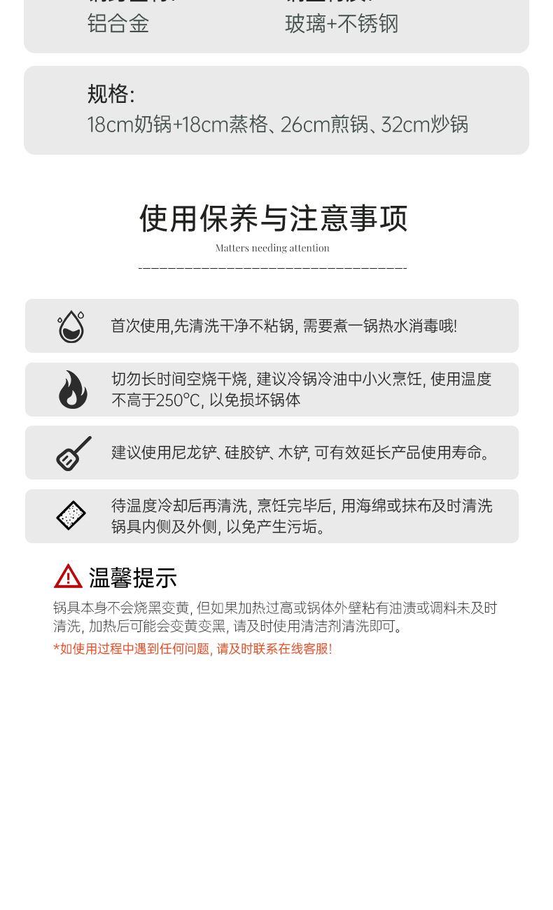 規(guī)格:32cm炒鍋+18cm奶鍋+18cm蒸格 材質(zhì):鋁合金+陶瓷 單個尺寸:650*400*172 1、無鉚釘,全鍋無死角不藏污 2、配蒸籠上蒸下煮,一份時間雙份美味 3、厚底薄壁,有效減少70%油煙 4、陶瓷外壁,久燒不易變色 5、不含PFAS PTEE,烹飪0擔(dān)憂