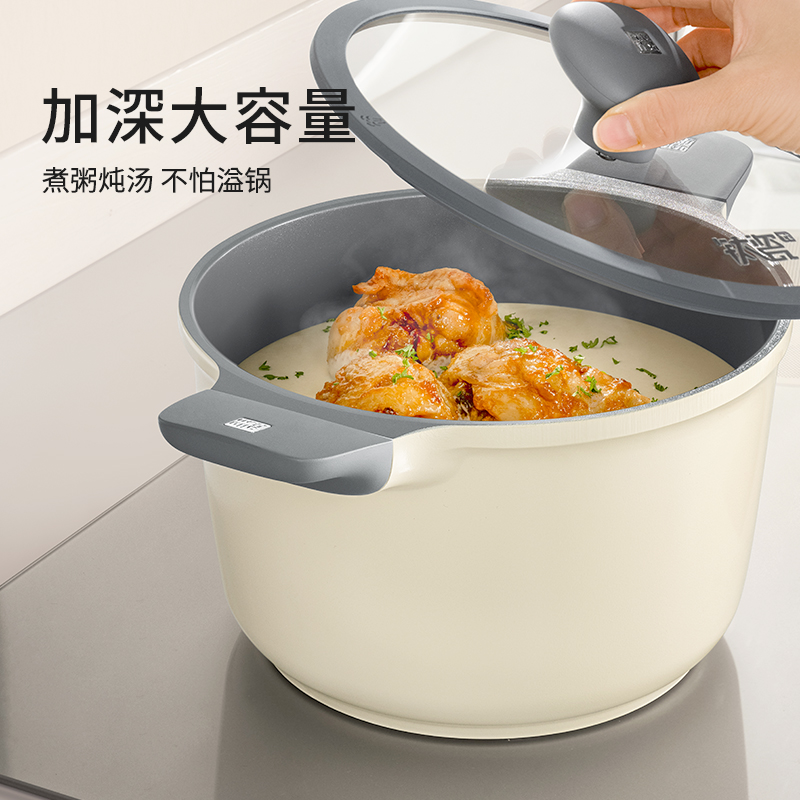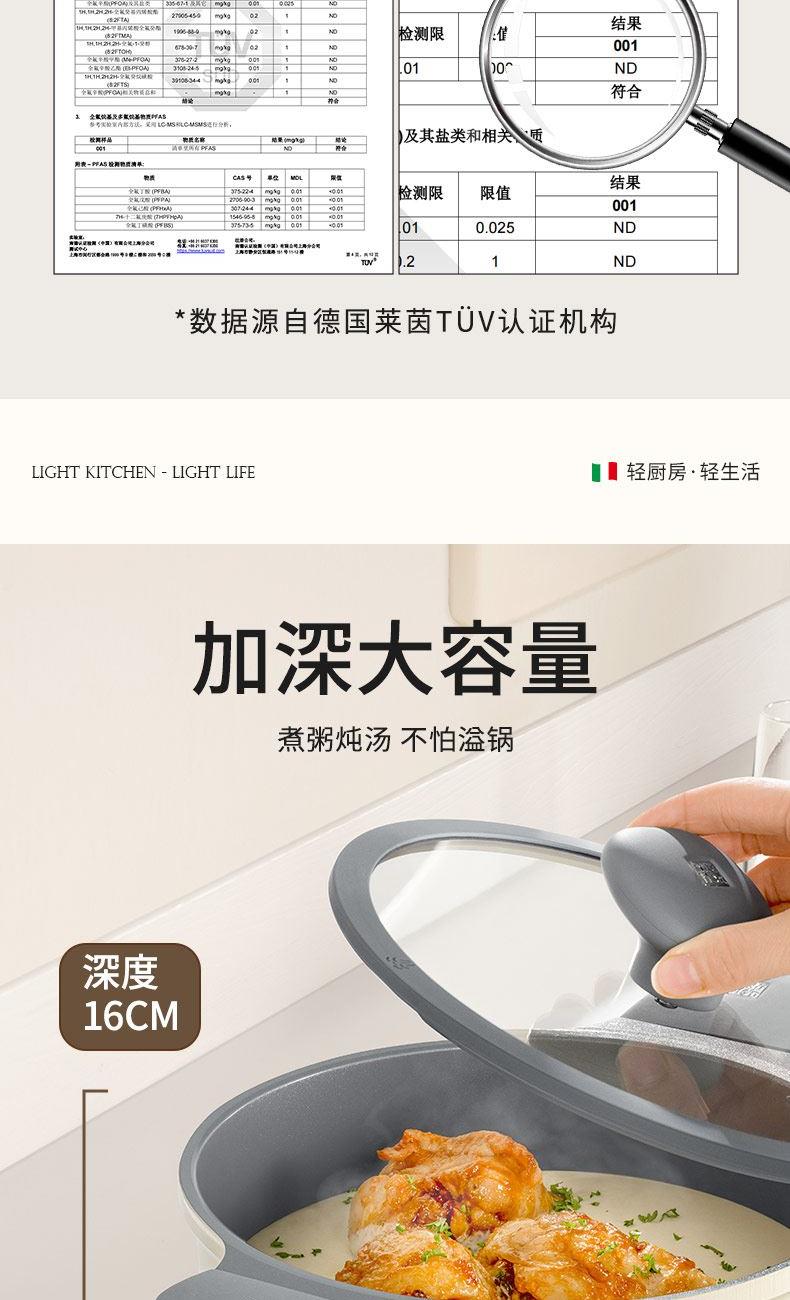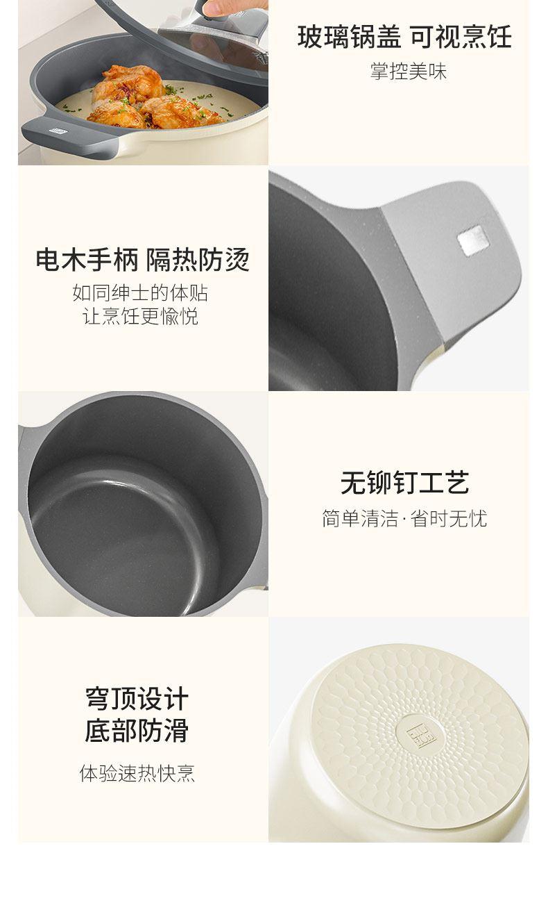 規(guī)格:22cm 材質(zhì):鋁合金+陶瓷 單個尺寸:330*315*160 1、國標(biāo)1級不粘,鈦不粘不糊底 2、鈦瓷革新材質(zhì),嬰童級接觸用 3、1.5kpa微壓鍋蓋,省時入味健康 4、底部穹頂意式設(shè)計,時尚又節(jié)能 5、可進洗碗機,釋放懶人天性。