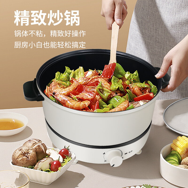 產(chǎn)品貨號(hào):AH-Y12J405 產(chǎn)品規(guī)格:3L/1200W 彩盒尺寸:280*198*280 1、香辣涮鍋、精致炒鍋,一鍋兩用 2、三層隔熱鎖溫,速熱防烤焦 3、內(nèi)層鎖熱,食品接觸用材質(zhì) 4、外層防燙,食品接觸PP材質(zhì), 5、極簡(jiǎn)式外觀,燜涮燉煮炸,不粘易清潔, 旋轉(zhuǎn)式控溫小巧易收納。