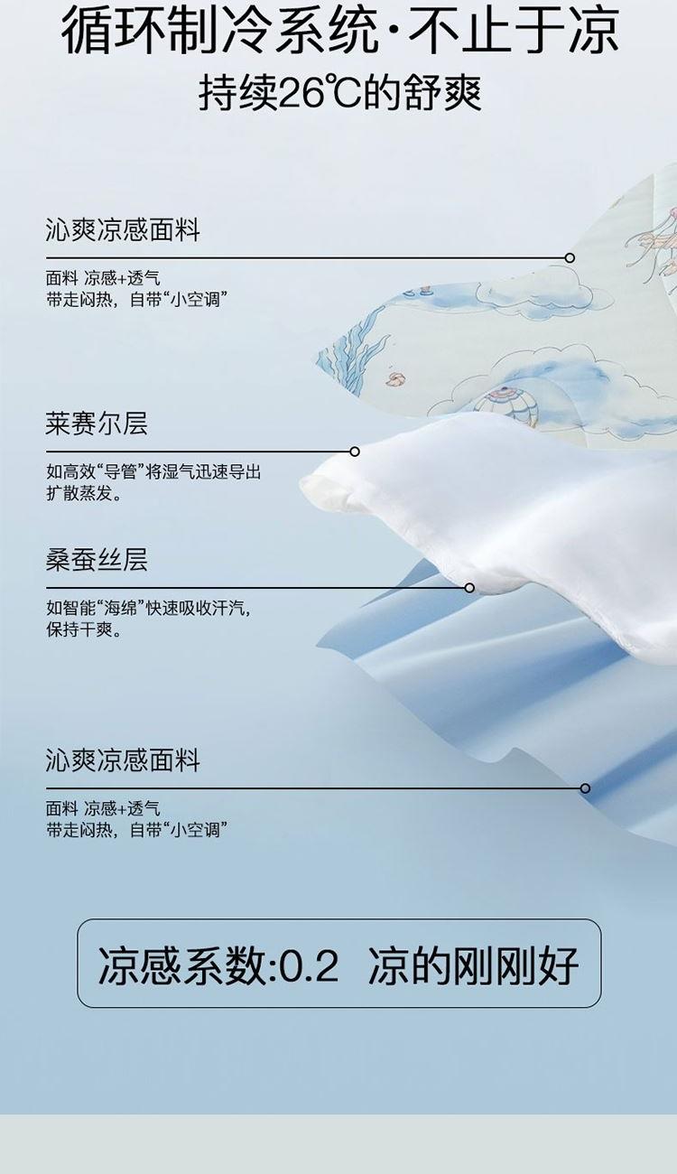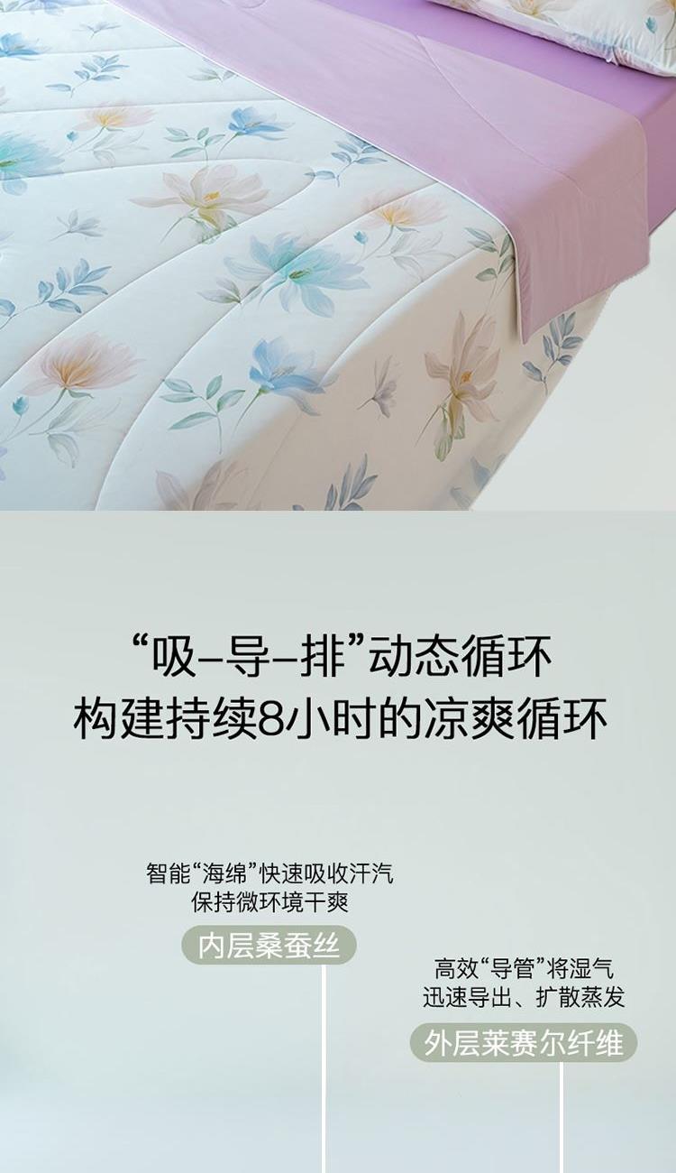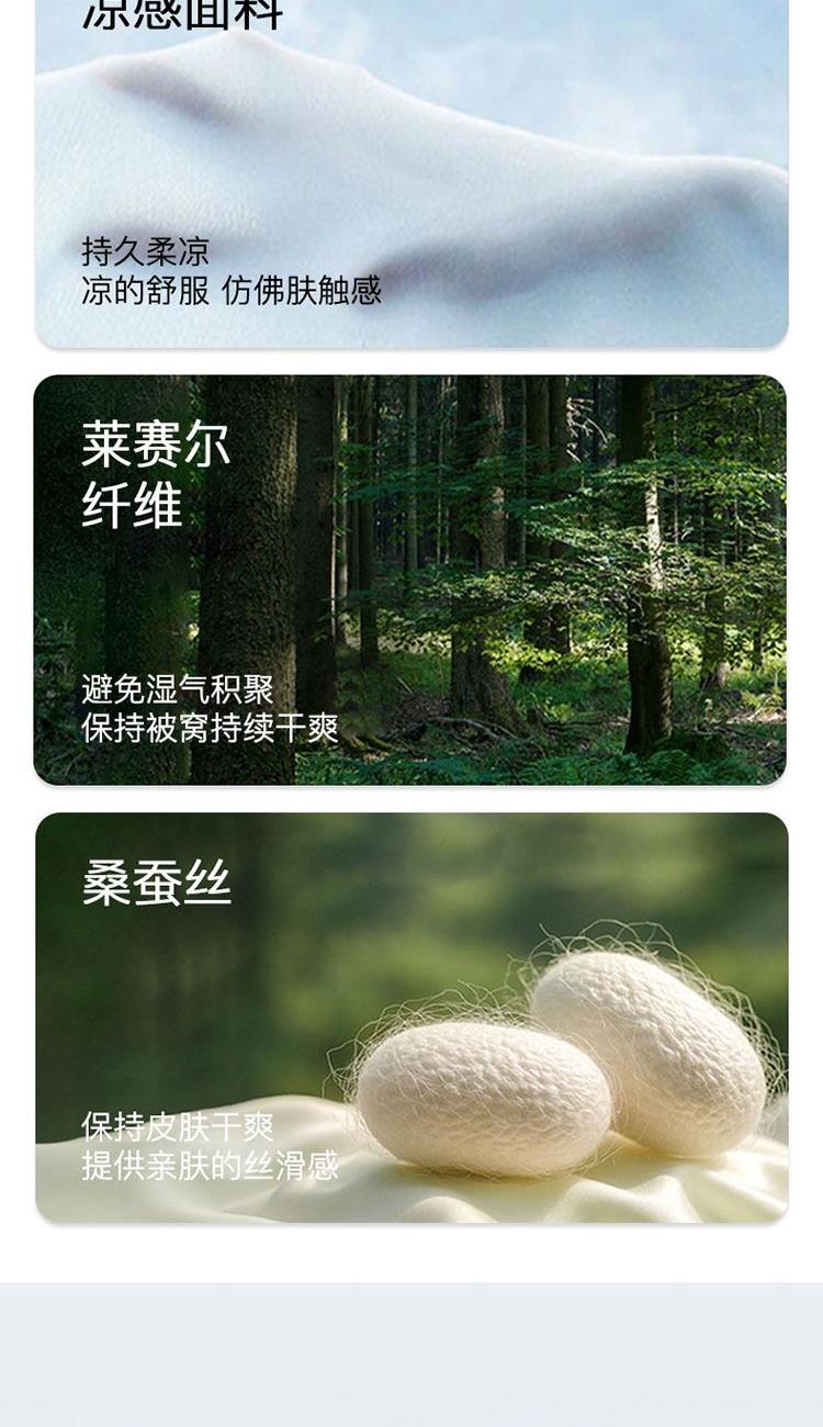 賣(mài)點(diǎn):1、一觸即涼,裸睡級(jí)膚感,雙料黑科技:萊賽爾纖維+桑蠶絲,涼感與柔潤(rùn)兼得