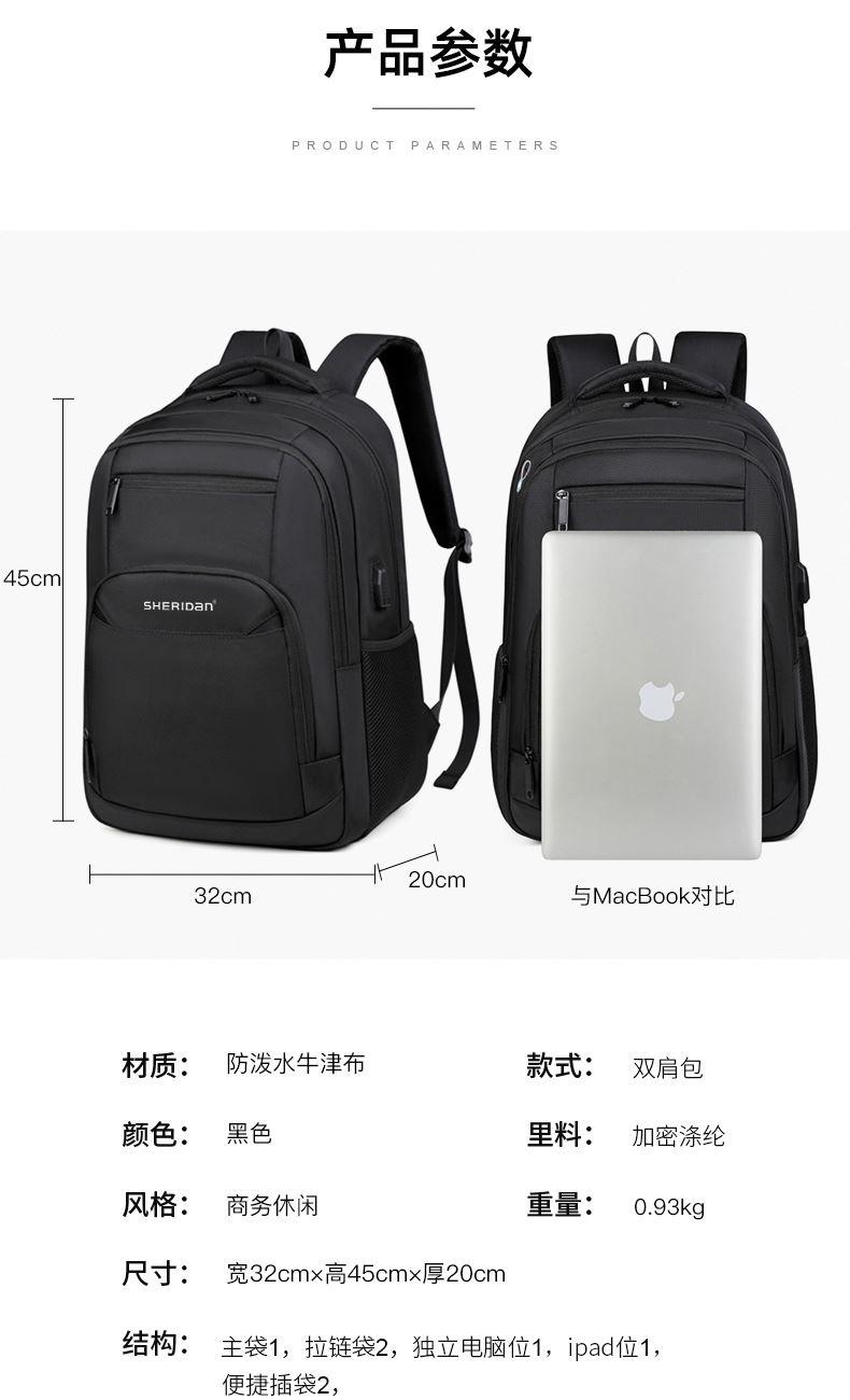 材質:防潑水牛津布 顏色:黑色; 規(guī)格:高45*寬32*厚20cm; 重量:0.93kg