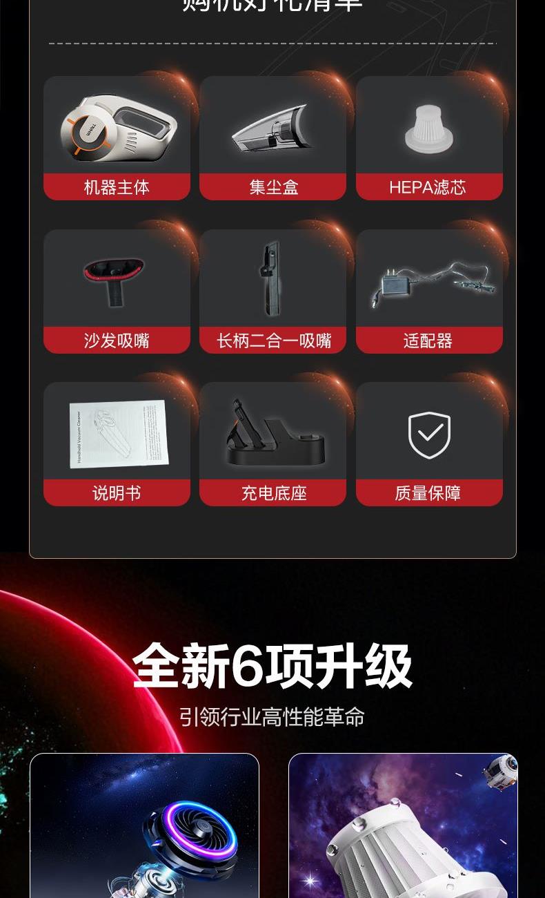 碎屑毛發(fā)一網(wǎng)打盡,強效吸嘴,擴大面積、快速清潔沙發(fā)/床墊/毛發(fā)/灰塵邊角全搞定。