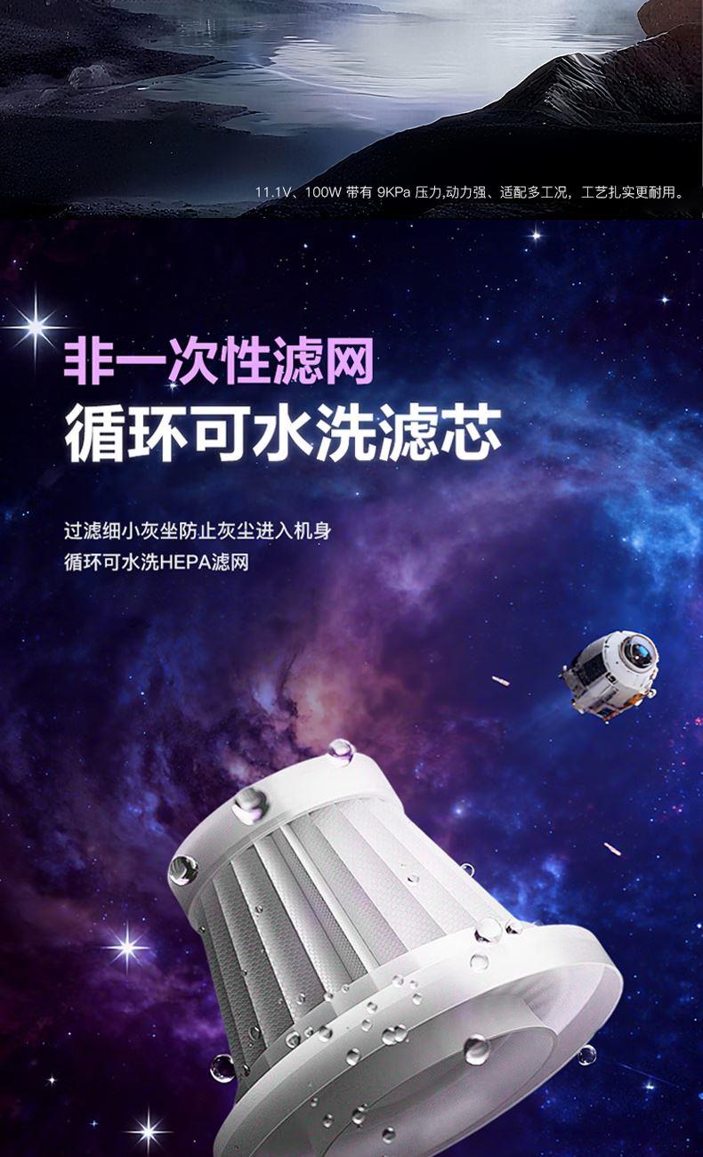 非一次性濾網(wǎng)循環(huán)可水洗濾芯,過濾細小灰坐防止灰塵進入機身循環(huán)可水洗HEPA濾網(wǎng)。