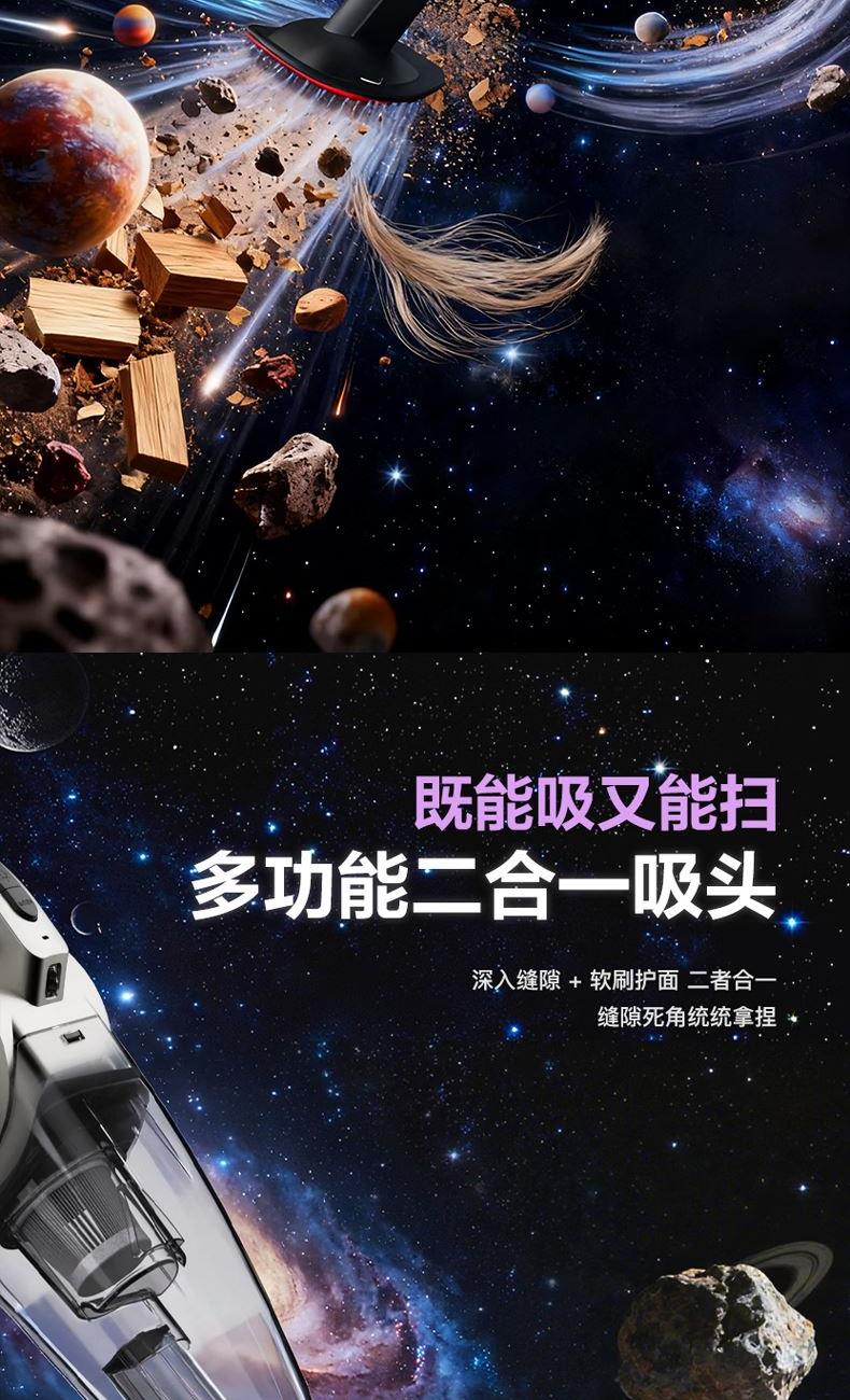 既能吸又能掃多功能二合一吸頭,深入縫隙+軟刷護面二者合一縫隙死角統(tǒng)統(tǒng)拿捏。