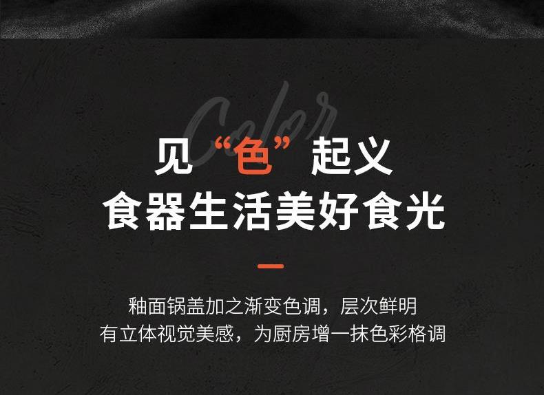 5、釉面鍋蓋加之漸變色調(diào),層次鮮明有立體視覺美感,為廚房增一抹色彩格調(diào)。
