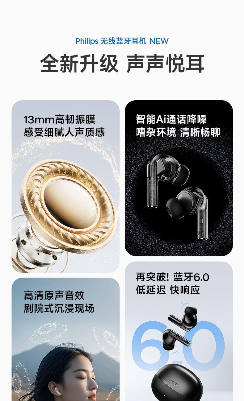 1.藍(lán)牙6.0低功耗穩(wěn)定傳輸,抗干擾性更強(qiáng),延遲壓到更低,音質(zhì)發(fā)揮到更出色;