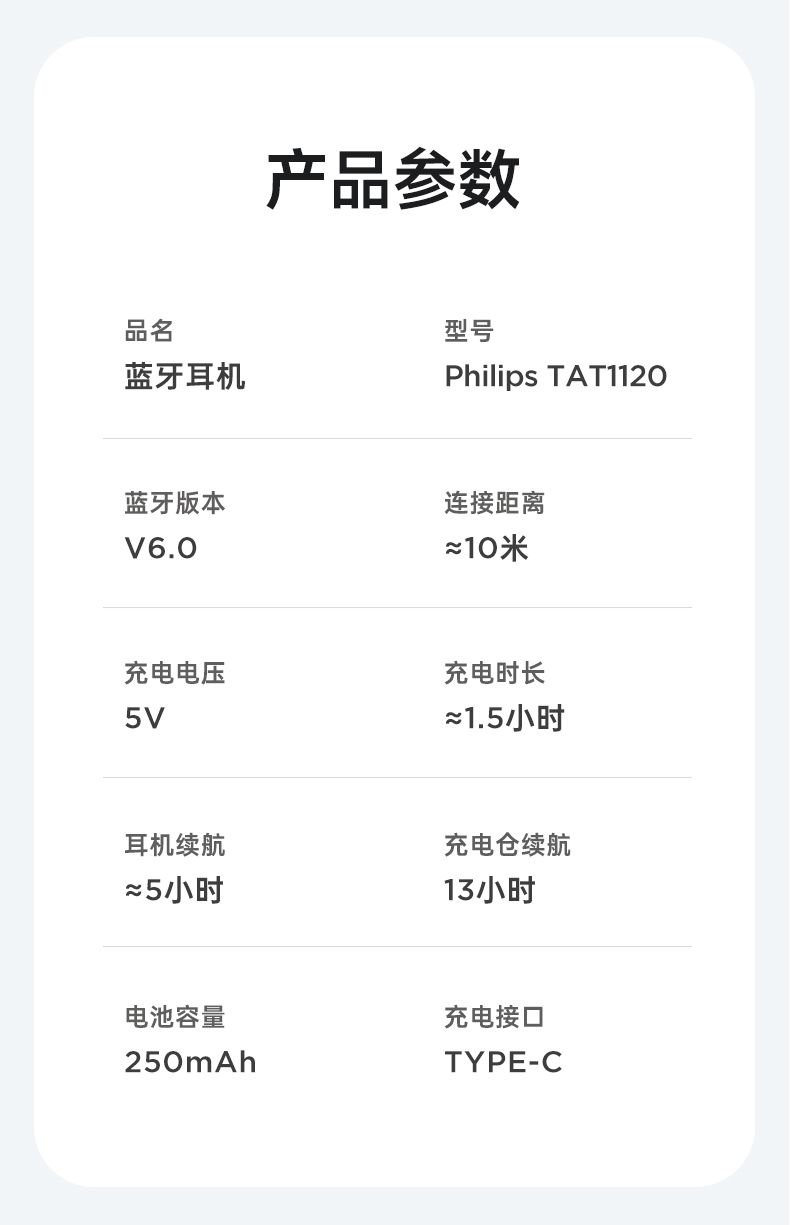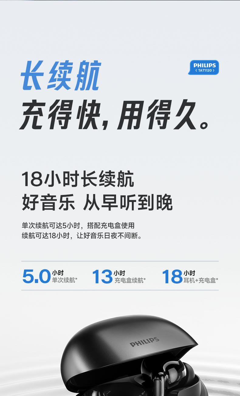飛利浦入耳式降噪藍(lán)牙耳機(jī)TAT1120