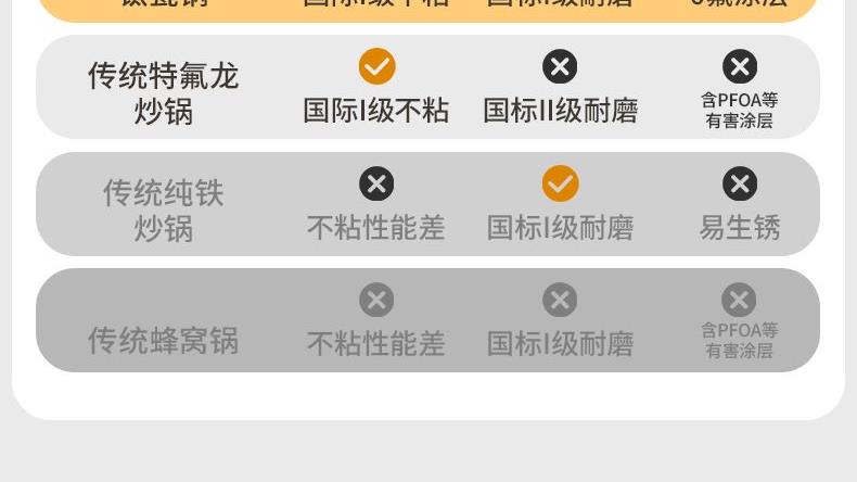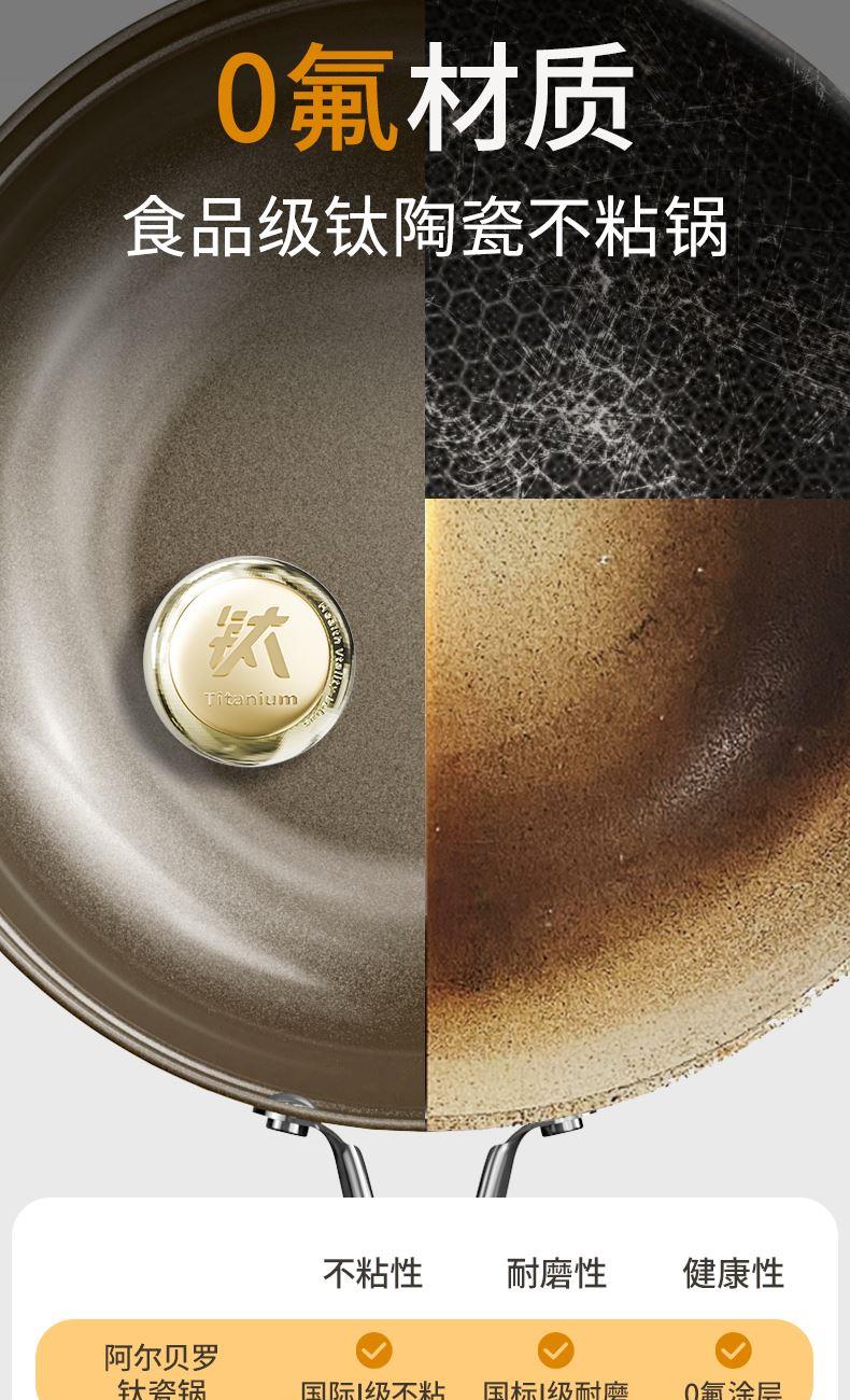 規(guī)格:26cm 材質(zhì):鋁合金+陶瓷 單個(gè)尺寸:482*322*105 1、國(guó)標(biāo)1級(jí)不粘,鈦不粘不糊底 2、鈦瓷革新材質(zhì),0氟0析出0涂層 3、9HV硬度,持久耐磨不粘 4、鍋體減重約18%,單手可顛 5、可進(jìn)洗碗機(jī),解放雙手。