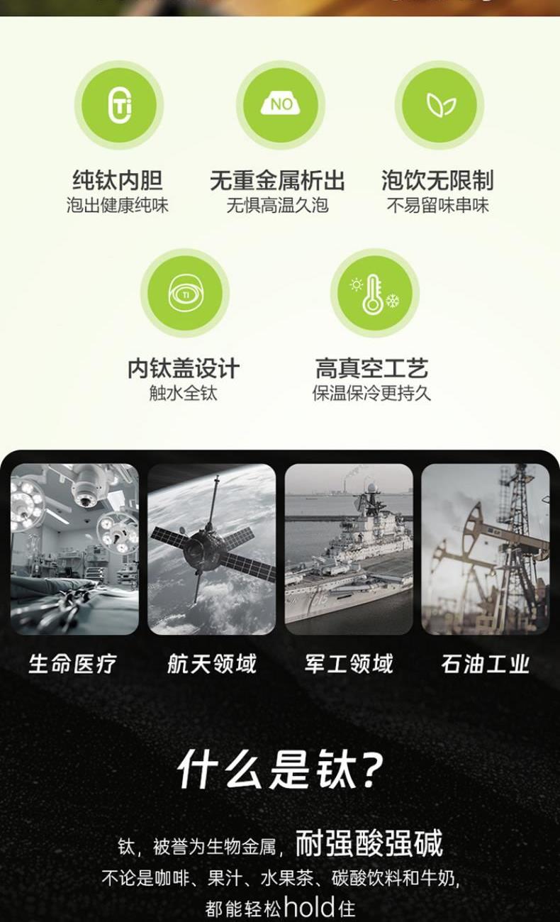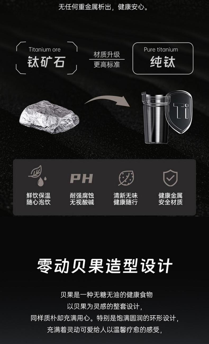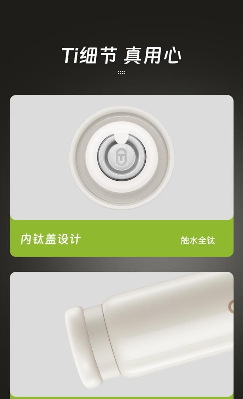 產(chǎn)品型號:RWS42B13Q-TW 產(chǎn)品容量:420ml 彩盒尺寸:72*72*200mm 凈重:0.30KG 產(chǎn)品材質(zhì):內(nèi)鈦外鋼 1、純鈦內(nèi)膽,泡出健康純味 2、無重金屬析出,無懼高溫久泡 3、泡飲無限制,不易留味串味 4、內(nèi)鈦蓋設(shè)計,觸水全鈦 5、高真空工藝保溫保冷更持久
