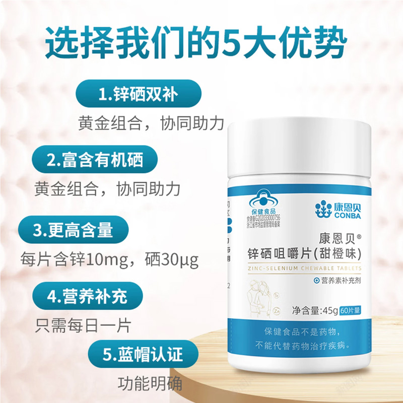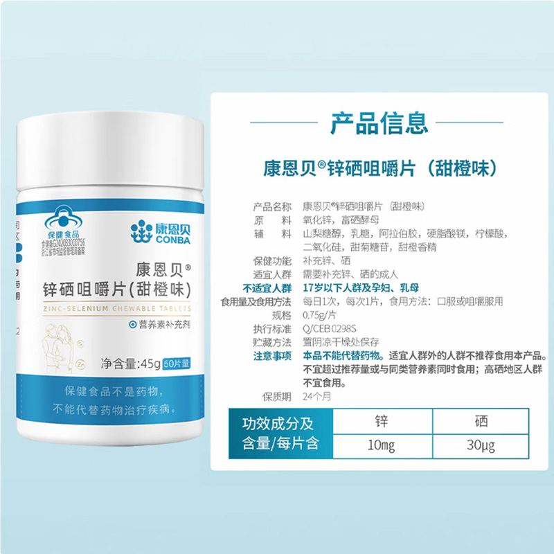 康恩貝鋅硒咀嚼片甜橙味 康恩貝鋅硒咀嚼片甜橙味