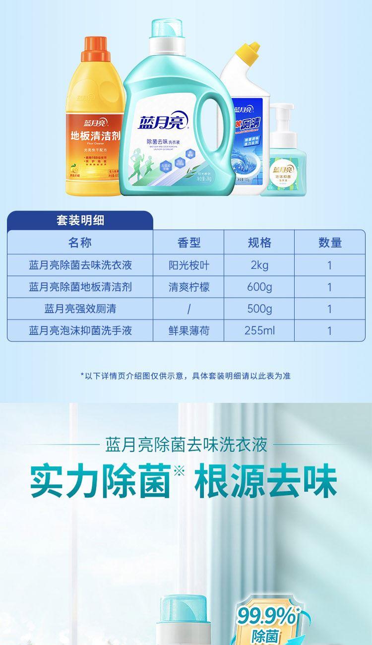 藍(lán)月亮洗衣液 凈味件套 2kg去味洗衣液-桉葉+600g地板水+500g廁清+255ml鮮果薄荷泡沫洗手液